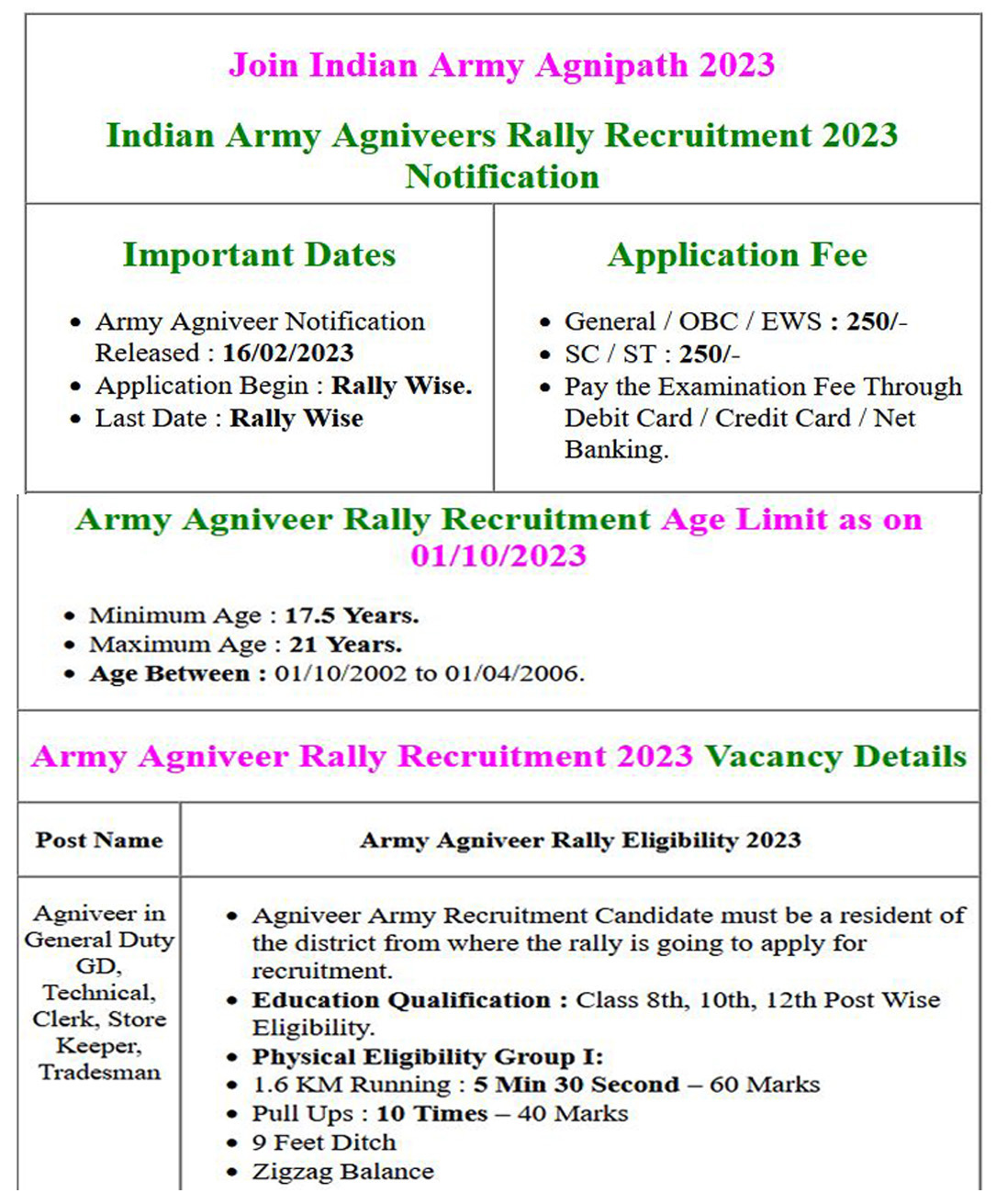 राजस्थान सेना अग्निवीर भर्ती 2023 अधिसूचना जारी