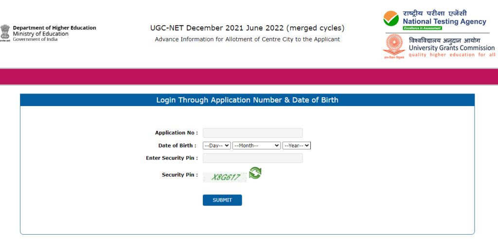 Advance Information for Allotment of Centre City to the Applicant UGC-NET December 2021 UGC-NET December 2021 June 2022 Admit card Download  June 2022 (merged cycles)